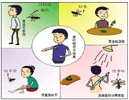 1:穿浅色衣服;大家注意咯!伊蚊(又称花斑纹)最喜欢叮在黑色衣服上,所以大家尽量在炎热的夏天穿一些颜色比较浅的衣服。
